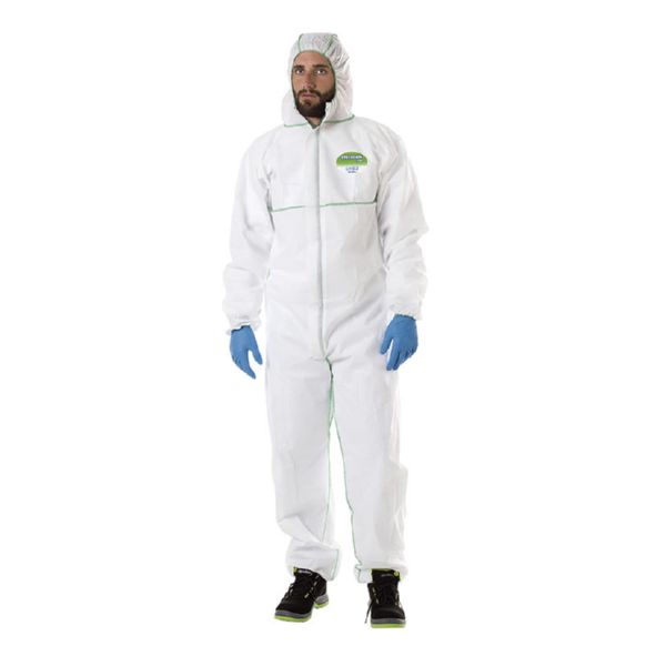 Transpirable y antiestáico. Aplicanciones: Protección contra el polvo y partículas sólidas clase 5. Protección limitada a salpicaduras químicas clase 6. EN 13034 (type 6) EN 13982-1 (type 5). Talla XL
