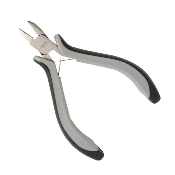 Acero cromo-vanadio acabado satinado. Mango antideslizante bimaterial. Con muelle. Corte diagonal. 115 mm.