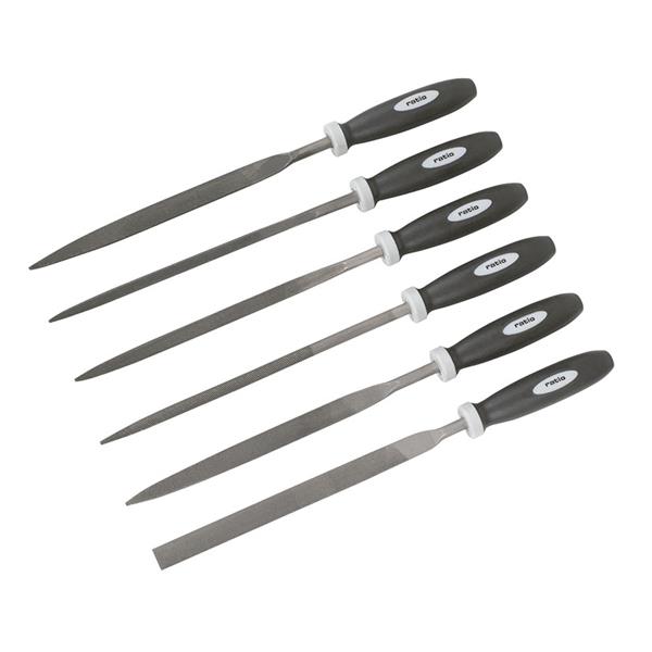 Mango bimaterial. entrefinos (limas aguja). Plano punta. Cuadrado, triangular, plano paralelo, media caña y redondo. 160 mm.