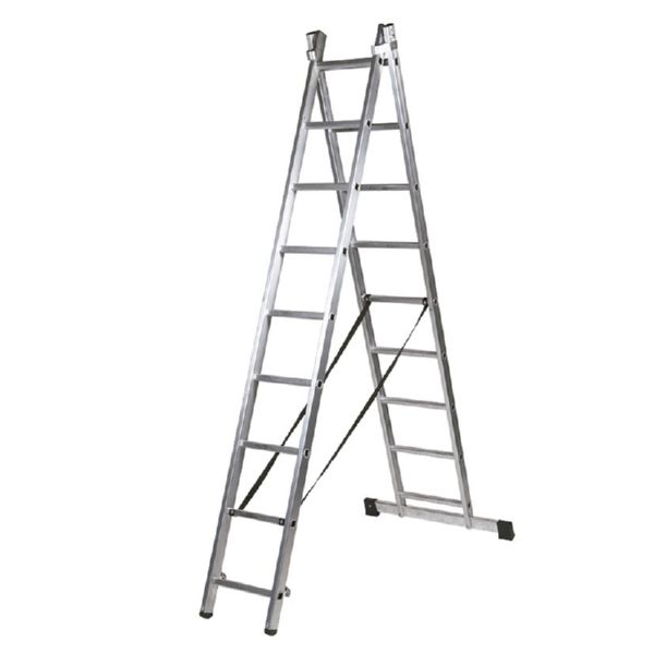 Barra establizadora, conteras PVC. Guías exteriores de deslizamiento en aluminio. Cinta de seguridad antiapertuta nilón. 2x9 peldaños.
