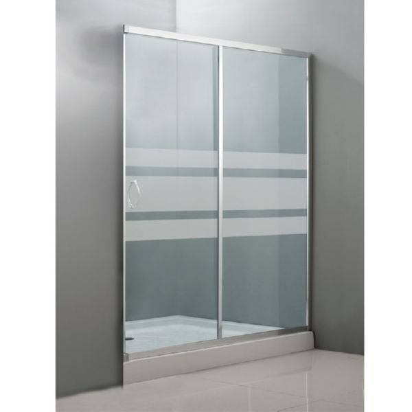 1 puerta corredera. Cristal securizado 4,5 mm. Serigrafiado horizontal. Perfilería aluminio cromado. 120xh.185 cm.