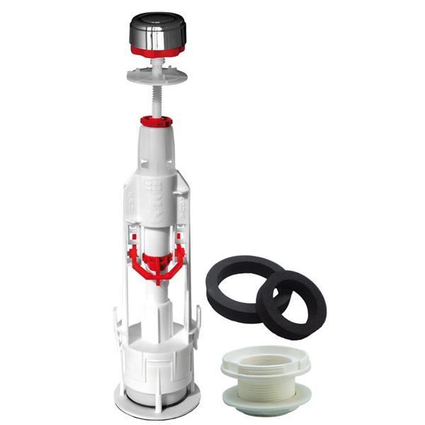 Tanque bajo. Mecanismo universal con descarga regulable de agua. Acoplable prácticamente a todas las cisternas. Adaptador a base cisternas Roca. Transmisión directa. Descarga interrumplible.