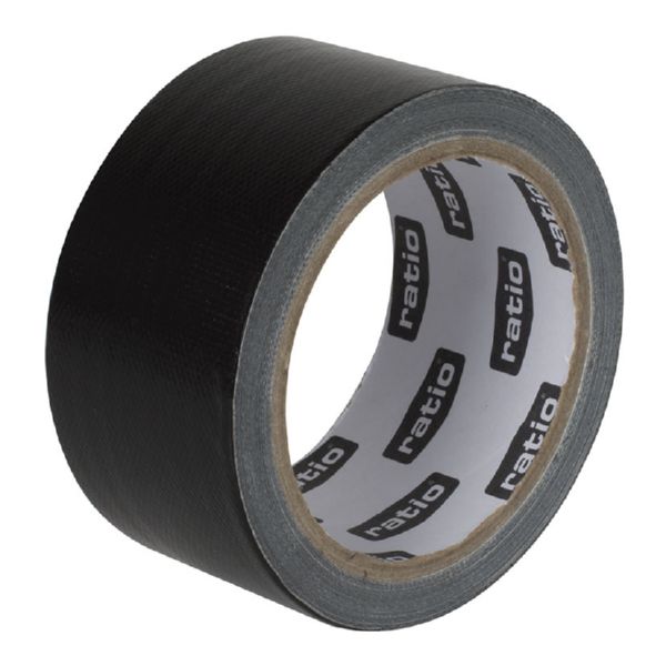Base de malla textil con recubrimiento de polietileno. Adhesivo de caucho de gran adherencia. Negra 10 m x 50 mm.