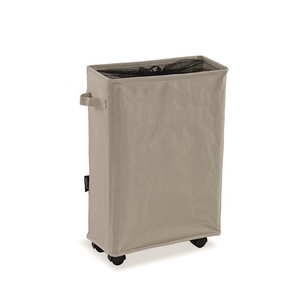 Cesto ropa con ruedas y tapa en acabado de malla. Material poliester e interior resinado para evitar humedad. 39x18,5x58 cm.