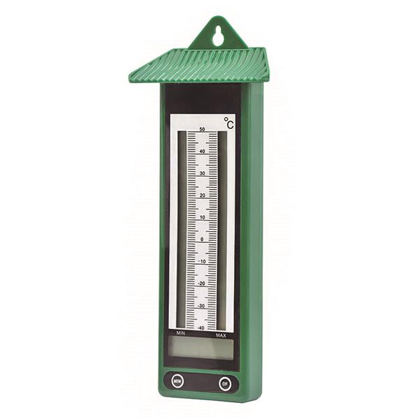 Pantalla LCD. Carcasa plástico color verde. Funciona con pilas AAA (no incluídas). Protección IPX3. 90x33xh.225 mm. Rango temperatura: -40~50° C.