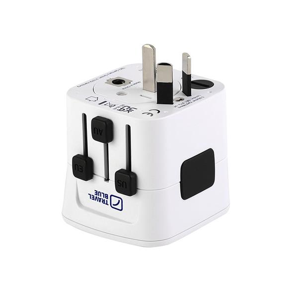 Adaptador de viaje apto para más de 150 países, con enchufes integrados para Europa, Francia, EE. UU. y Australia/China, permitiendo conectar tus dispositivos de forma segura en todo el mundo. Universal.