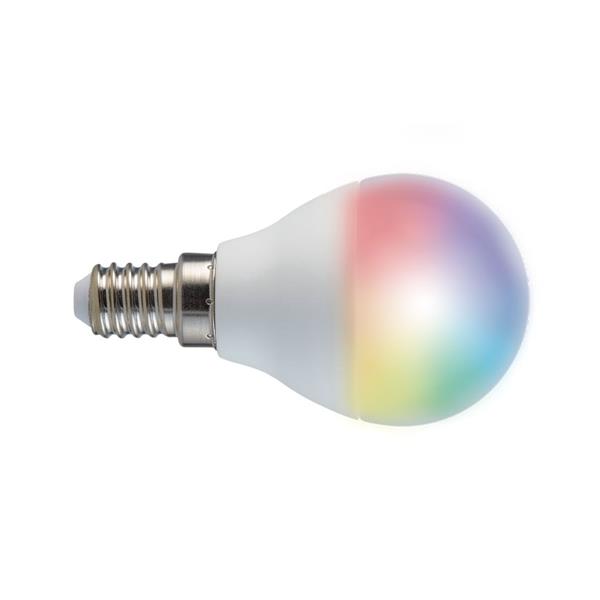 CCT + RGB. Rosca E14. Bombillas inteligentes conectables desde cualquier parte con tu dispositivo móvil. Compatible con Alexa y Google Assistant. Programa y ahorra con la iluminación de tu estancia. Fácil instalación. Iluminación regulable de 2700K a 6500K y colores RGB. 5 W. 470 lm. ø 45x80 mm.