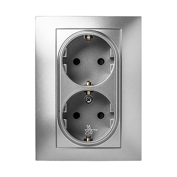 Color aluminio. Diseño recto y minimalista. Doble enchufe 16 A.