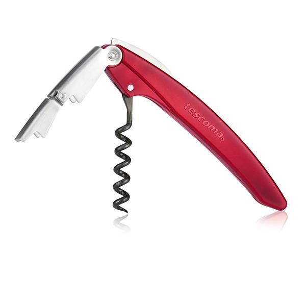 Sistema profesional 2 tiempos y espiral. Recubrimiento antiadherente para abrir todo tipo de botellas sin romper el corcho. Color rojo. 13 cm.