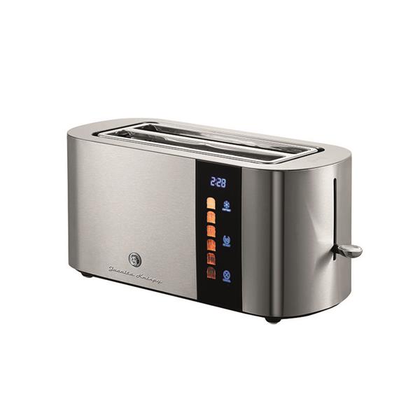 Doble ranura ancha. Regulador de tostado. Función de descongelado y recalentado. Expulsión automática. Diseño compacto y elegante. Potencia: 1.500 W. Funciones: 3 (tostado, descongelado, recalentado). Ranuras: 2 con autocentrado. Enchufe: VDE. Encendido/Apagado: Automático. Panel de control: Táctil digital.
