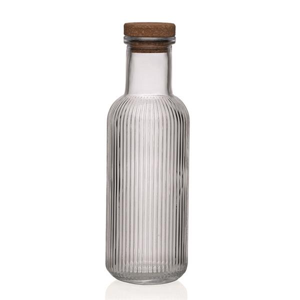 Botella en vidrio con acabado rayas. Tapón en corcho y capacidad 1 litro. 8,7x8,7x27,8 cm