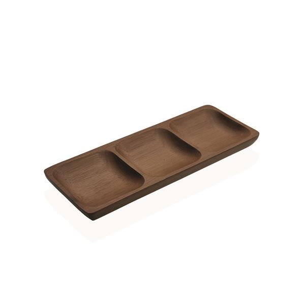 Fuente rectangular 3 compartimentos en madera de acacia. 26x10x2cm.