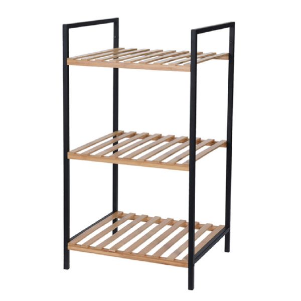 Estructura metálica negra y baldas de bambú. 3 estantes. 38x32,5x70 cm.