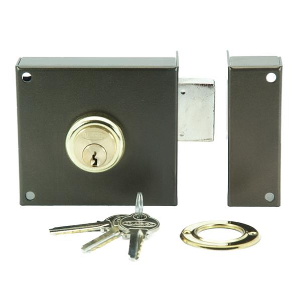 Con cilindro y palanca accionada con llave por ambos lados. 100mm. Entrada de 60 mm. Derecha. Bombillo redondo.