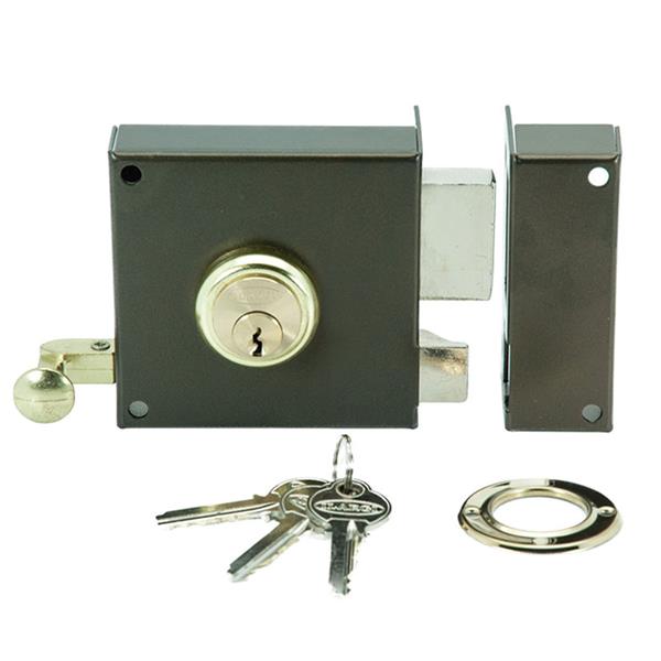 Con cilindro y palanca accionada con llave por ambos lados. Picaporte accionado con llave y tirador por el interior. 100 mm. Entrada de 60 mm. Derecha. Bombillo redondo.