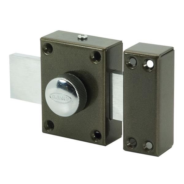 Cilindro exterior redondo con 3 llaves y botón interno giratorio. Bombillo redondo. No tiene mano. 60 mm.