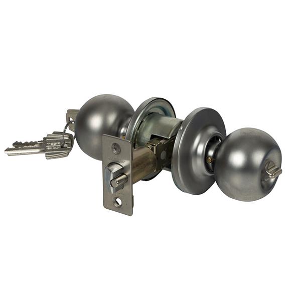 Llave exterior y condena interior. Picaporte regulable 60-70 mm. Cromo mate.