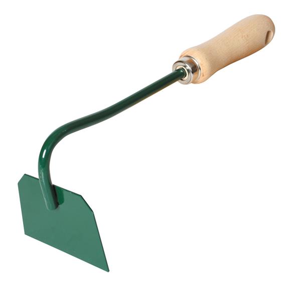 Acero pintado epoxi. Mango madera barnizada fijado con virola metálica. Azadilla. 310 x 80 mm.