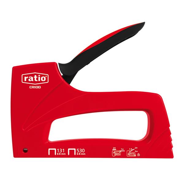 Armazón plástico. Sistema de bloqueo y seguridad en maneta. Ergonómica y confortable, ventana indicadora de carga baja. Incluye 300 grapas 530 (6 - 8 mm) Grapas 131 (6 - 8 mm). Grapas 530 (6 - 8 mm).