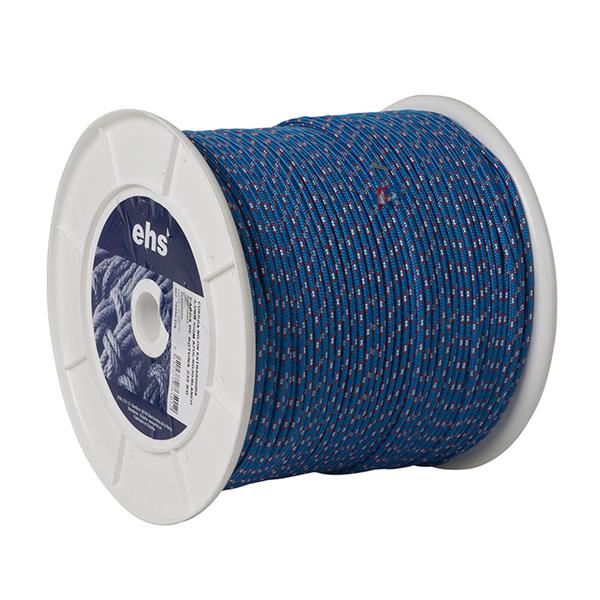 Cuerda trenzada doble capa con alma de monofilamento. Compuesto anti-UVA. Aplicaciones: tendederos, decoración, etc. ø 4,5 mm x 400 m. Azul/rojo/blanco